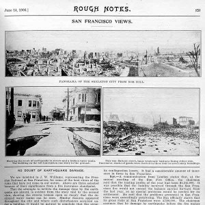 The San Francisco earthquake demolishes the picturesque city, leaving tens of thousands of people homeless. Agent demands for insurance forms swamp Rough Notes with orders. Overnight, 75,000 proof-of-loss forms are requested by telegram. RN employees work around-the-clock to fill the orders. RN’s efficiency and speed impress agents.