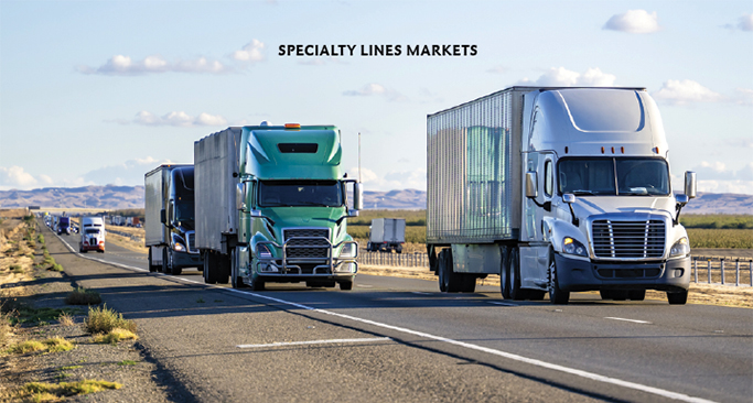 “Industrywide, we see many insurers have less appetite for writing any stand-alone lines of business,” Adkins says. “Many standard insurers now often require package policies or multi-policy accounts that combine commercial auto coverage with general liability, property, excess, cyber, or other coverages.”