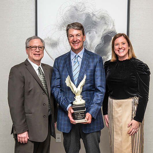 The winning agent, broker, or agency will be honored at a special dinner in the spring of 2026 in conjunction with the Rough Notes Agency of the Year celebration in Indianapolis. The winning philanthropic organization or charity will receive a $5,000 check in the name of the winning agent, broker, or agency. Additionally, the winner will be presented an engraved eagle sculpture and will be featured in an article in a future issue of Rough Notes magazine about the winning community service project.