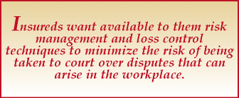 Insurers have recognized that there is a demand for more than just insurance coverage. There is also a demand for information about the cost and settlement value of work-related claims. Moreover, it appears as if the insurance industry is doing something about it. In addition to providing employment practices liability (EPL) insurance protection to those institutions that fear work-related lawsuits, insurers are also outsourcing the expertise of human resources firms and legal advisors to keep insureds abreast of legal and regulatory developments. In short, insurers have come to recognize that insureds want available to them risk management and loss control techniques to minimize the risk of being taken to court over disputes that can arise in the workplace.