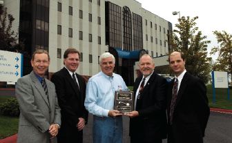 Akers & Arney partners present Skaggs Community Health Center Administrator/CEO Bob Phillips with a "Gold Key Client" award in appreciation of their account. The health center is Akers & Arney's largest client.