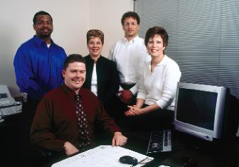 Helping to make Rockwood a premier provider of EPLI are (seated left to right) Thomas Caputo, EPLI Program Manager; Kathy Hasted, Management Liability Program Manager; and (standing left to right) Corlin Hackett, Underwriter; Joanne LaMaestra, Production/Quality Control Coordinator; and Thomas Nolan, Underwriter.
