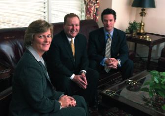 Meeting with Jennifer Gallagher are two of Innovative Risk Services' product managers: (from left) Robert McWeeney, who handles Hospitality Plus and Patrick Kennedy, who is responsible for Premier Comp Plus.