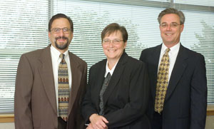 | Professional Underwriters staff who have helped the firm grow: (from left) Bob Battaglia, Underwriting Manager; and Diann Zaneski, Operations Manager; with John Solari. |